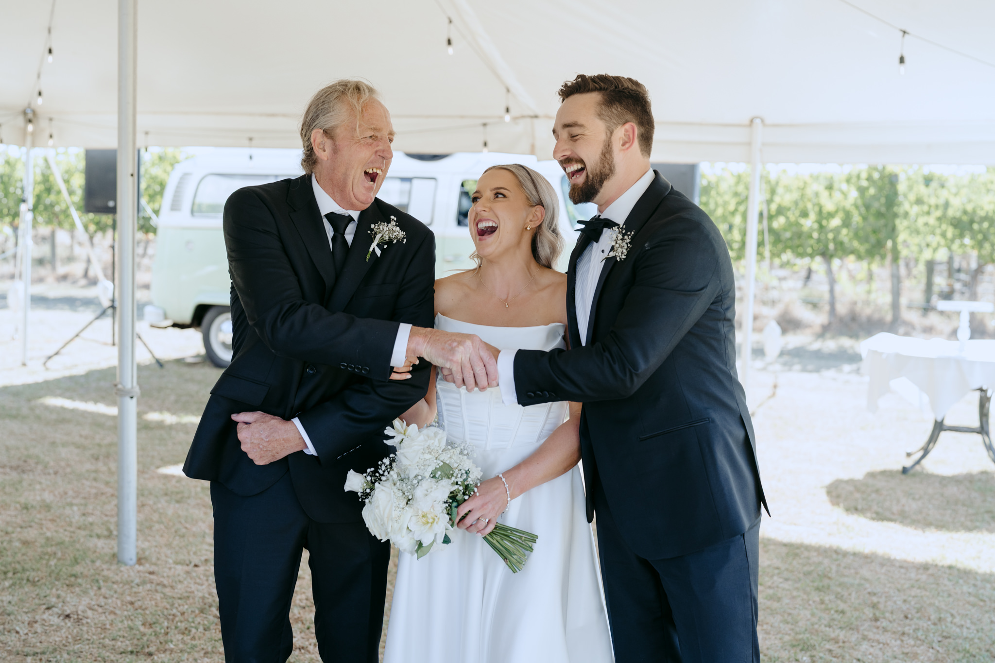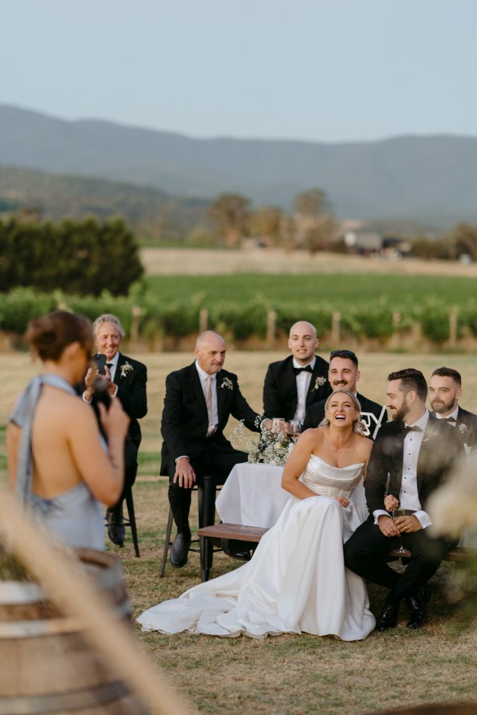 When it comes to Tokar Estate Yarra Valley wedding photos, you’re spoilt for choice. The front lawn ceremony space overlooks the vines and the ranges beyond, while the building’s arches, olive trees, and stone walls make for perfect backdrops throughout the day. Whether we’re chasing golden hour or sneaking away for some quiet portraits post-ceremony, the estate always delivers.